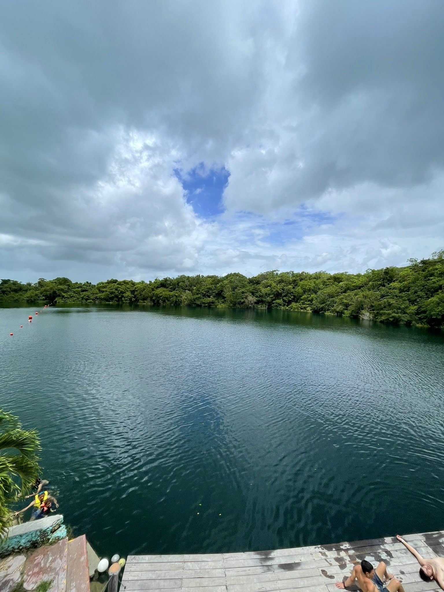 There are not many people there relaxing since tours, kayaks, swimmers, etc., enter in and out of the cenote briefly from the lagoon.